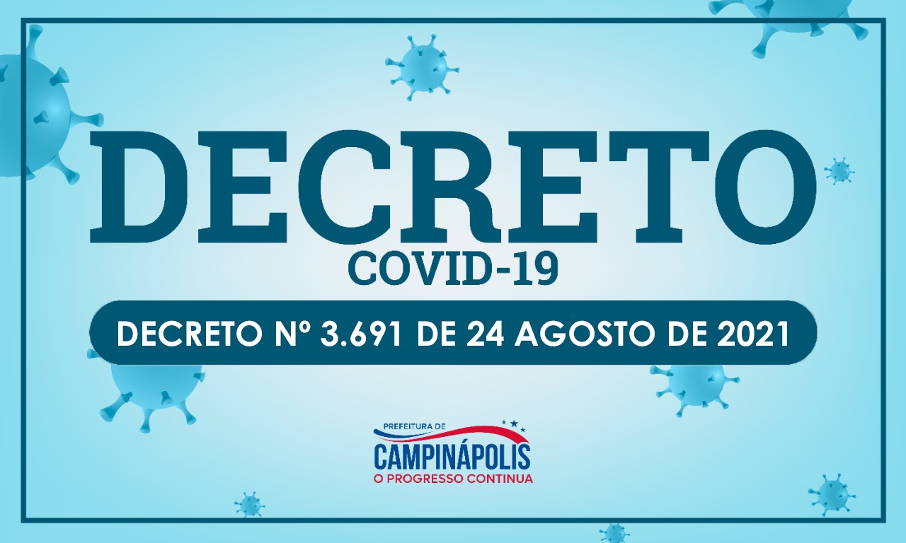 “Dispõe sobre as Medidas Preventivas e Restritivas, em caráter temporário, para prevenção dos riscos de disseminação do Coronavírus – COVID – 19, no município de Campinápolis- MT, pelo período de 24/08/2021 a 08/09/2021, revoga-se os Decretos nº 3686 e 3672/2021”. JOSÉ BUENO VILELA, PREFEITO MUNICIPAL DE CAMPINÁPOLIS – MT, no uso das atribuições que lhe são conferidas pela Lei Orgânica Municipal, e CONSIDERANDO o do número de pessoas infectadas pelo COVID-19 em nosso Município e em todo o Estado do Mato Grosso; CONSIDERANDO os Decretos Estaduais nº 897/2021, 874/2021 e demais em vigência; CONSIDERANDO a taxa de ocupação dos leitos públicos disponibilizados para internação e dos leitos de UTIs, exclusivos para Covid-19 em nosso Estado; CONSIDERANDO que a pandemia ocasionada pelo COVID-19, a sua propagação e contágio através de contatos por proximidade e aglomerações, fazendo-se necessário que sejam tomadas providências do sentido de coibir a sua propagação; CONSIDERANDO que a necessidade de adoção de medidas não farmacológicas para evitar a disseminação do COVID-19 sem olvidar da manutenção das necessidades essenciais coletivas; CONSIDERANDO o comprometimento da Administração Pública com a preservação da saúde, e bem estar de toda a população campinapolense; CONSIDERANDO a Lei Estadual 11.316 de 02 de março de 2021; CONSIDERANDO a Lei Estadual 11.326 de 24 de março de 2021; CONSIDERANDO a Lei Municipal 1.304 de 09 de junho de 2021; CONSIDERANDO a necessidade de continuar reduzindo o quantitativo de pessoas contaminadas em nosso município; DECRETA Art. 1º - Todos os estabelecimentos em atividade no território do município de Campinápolis devem observar os seguintes protocolos de saúde e normas sanitárias durante seu funcionamento: I - evitar circulação de pessoas pertencentes ao grupo de risco, conforme definição do Ministério da Saúde; II - disponibilizar locais adequados para lavagem frequente das mãos com água e sabão e/ou disponibilização de álcool na concentração de 70%; III - ampliar a frequência diária de limpeza e desinfecção de locais frequentemente tocados, tais como pisos, corrimãos, maçanetas, banheiros, interruptores, janelas, telefones, teclados de computador, controles remotos, máquinas acionadas por toque manual, e outros; IV - evitar a realização presencial de reuniões de trabalho e priorizar a realização de atividades de forma remota mediante o uso de ferramentas tecnológicas; V - controlar o acesso de modo a garantir o distanciamento mínimo de 1,5m entre as pessoas; VI - vedar o acesso de funcionários, consumidores e usuários que não estejam utilizando máscara de proteção facial, ainda que artesanal; VII - medir a temperatura corporal das pessoas na entrada dos estabelecimentos, impedindo sua entrada em caso de registro igual ou superior a 37,8º; VIII - manter os ambientes arejados por ventilação natural; IX - adotar as recomendações atuais de isolamento domiciliar para os profissionais pertencentes ao grupo de risco, conforme definido pelo Ministério da Saúde; X - observar as determinações das autoridades sanitárias para a contenção de riscos, especialmente quando a atividade exigir atendimento presencial da população, com a orientação aos funcionários sobre o modo correto de relacionamento com o público. Art. 2º - Fica regulamentado a abertura/ funcionamento dos estabelecimentos comerciais com as seguintes restrições: I – Supermercados, distribuidoras de gás, açougues e frutarias, os quais são reconhecidos como SERVIÇOS ESSENCIAIS, poderão funcionar normalmente de segunda a sábado das 05:00h às 20:00h, fechado aos DOMINGOS; a) Todos os estabelecimentos descritos no inciso anterior, deverão permitir a entrada de no máximo 01 (uma) pessoa a cada 2 (dois) metros quadrados para cada local, a fim que seja mantido o distanciamento mínimo de 1,5 (um metro e meio) metros quadrados entre as pessoas dentro do estabelecimento. b) Fica limitado a entrada nos estabelecimentos descritos no inciso anterior a apenas 01 (um) membro por família por vez; c) Recomenda-se que o proprietário ou responsável pelo estabelecimento mantenha uma pessoa para desempenhar a função de “Porteiro”, a fim de evitar aglomerações dentro e fora do estabelecimento; bem como que monitore o cumprimento das normas de prevenção e combate do COVID – 19; d) Fica determinado que os serviços de “delivery”, quanto aos estabelecimentos de serviços essenciais, poderão ocorrer até as 20h (vinte horas), com atividades inerentes apenas à entregas de produtos; sem possibilidades de retiradas no local, após o horário de funcionamento, a fim de evitar aglomerações junto aos mesmos. II – As Instituições bancárias e Casas Lotéricas poderão funcionar normalmente, devendo disponibilizar uma pessoa encarregada para realizar o monitoramento contínuo dos clientes junto aos caixas, bem como realizar as devidas marcações/sinalizações no chão dentro, e nas proximidades do estabelecimento a fim de manter o distanciamento entre as pessoas, respeitando ainda as normas e protocolos de higiene de combate e prevenção a COVID-19; III – As farmácias, os serviços de saúde, de hospedagem e congêneres, de transporte coletivo, transporte individual remunerado de passageiros por meio de taxi, funerárias, postos de combustíveis, indústrias, serviços de manutenção de fornecimento de energia, água, Internet, telefonia, coleta de lixo atividades de logísticas e distribuição de alimentos não ficam sujeitas às restrições de horário, podendo fixar o funcionamento livremente. IV – Padarias, restaurantes, lanchonetes, Distribuidoras de bebidas e similares funcionarão de segunda a segunda das 05:00h às 23:00h, com o cumprimento das medidas preventivas de combate ao COVID-19, conforme descritos no caput e seus incisos, devendo ainda respeitar o distancia